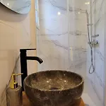 A kertre néző 40 m^2-es apartman szobái tartalmaznak öltözőt, kanapét és kávé/teafőzőt. Kényelme biztosításának érdekében külön WC és zuhanyzó biztosított.